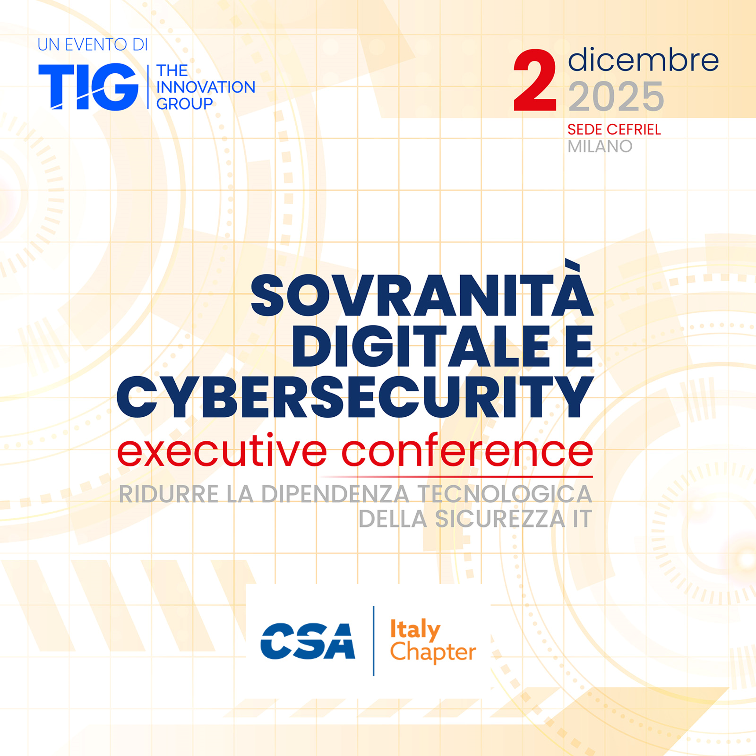 CSA Italy patrocina la executive conference Sovranità Digitale e Cybersecurity organizzata da TIG-The Innovation Group il prossimo 2 dicembre a Milano presso Cefriel.
