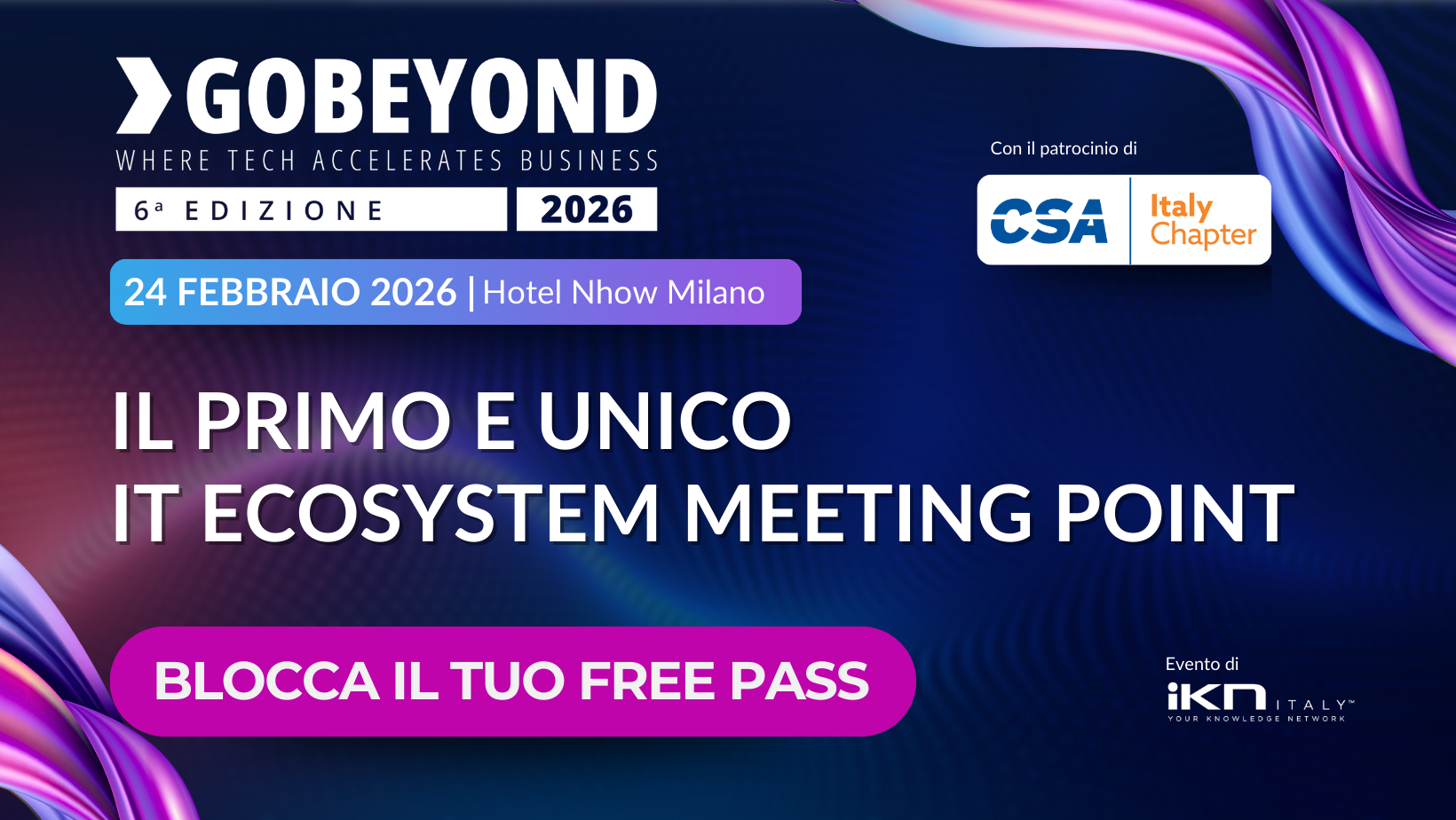 CSA Italy patrocina la manifestazione GoBeyond 2026 organizzata da iKN Italy il prossimo 24 febbraio a Milano presso Hotel nhow, Via Tortona, 35 Milano.